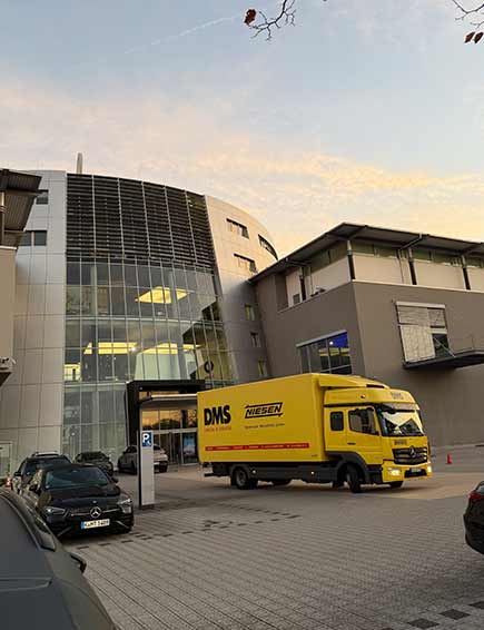 Für den sicheren Ablauf der Arbeiten griff NIESEN auf die Unterstützung von DMS Aschendorf aus Neuss zurück. Durch zusätzliche Fahrzeuge und Personalressourcen entstand eine enge Zusammenarbeit, die exemplarisch zeigt, wie leistungsfähig die DMS-Gemeinschaft im Verbund agiert und wie effizient große Projekte in Kooperation umgesetzt werden können.